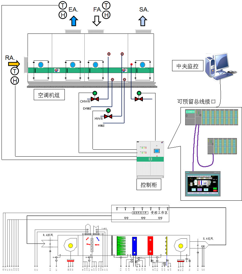 1.送回風溫濕度實時監(jiān)測;新排風溫濕度實時監(jiān)測;室內(nèi)溫濕度檢測(多點);
